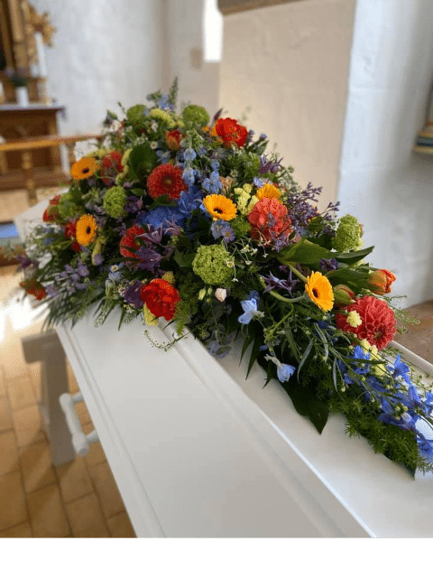 Vi går og kører langt for at finde præcist de blomster, I ønsker, og vi ‘låner’ gerne fra jeres egne haver, hvis det giver mening for jer.